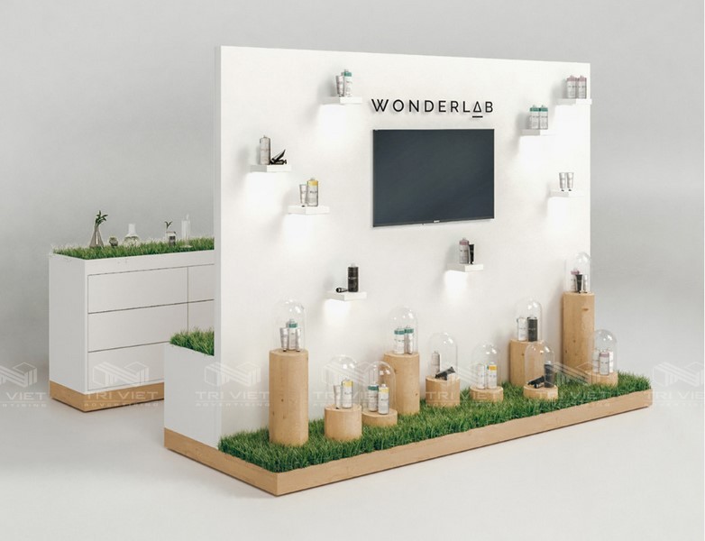 Mỗi chi tiết trong gian hàng – từ hệ thống ánh sáng, vật liệu, kết cấu cho đến cách bố trí sản phẩm – đều được thực hiện tỉ mỉ nhằm đảm bảo tính thẩm mỹ và độ bền cao.